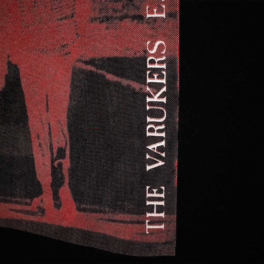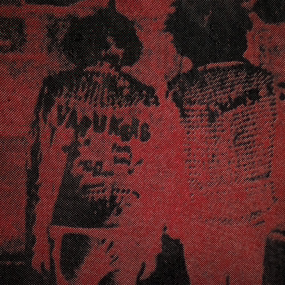 WHITE AND RED INK HANDSCREENED ONTO BLACK EARTHPOSITIVE EP185 ORGANIC FAIR TRADE COTTON, 2024